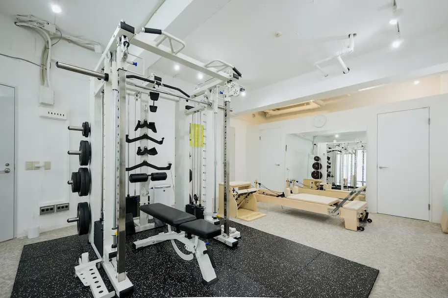 様々なアタッチメントで多様なトレーニングが行えます。1kgのダンベルからゴムバンドもご用意しております。