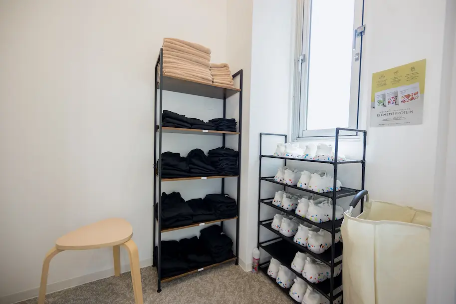 ウェア・タオル・シューズもレンタルできます。トレーニング後にボディシートもご利用いただけます。