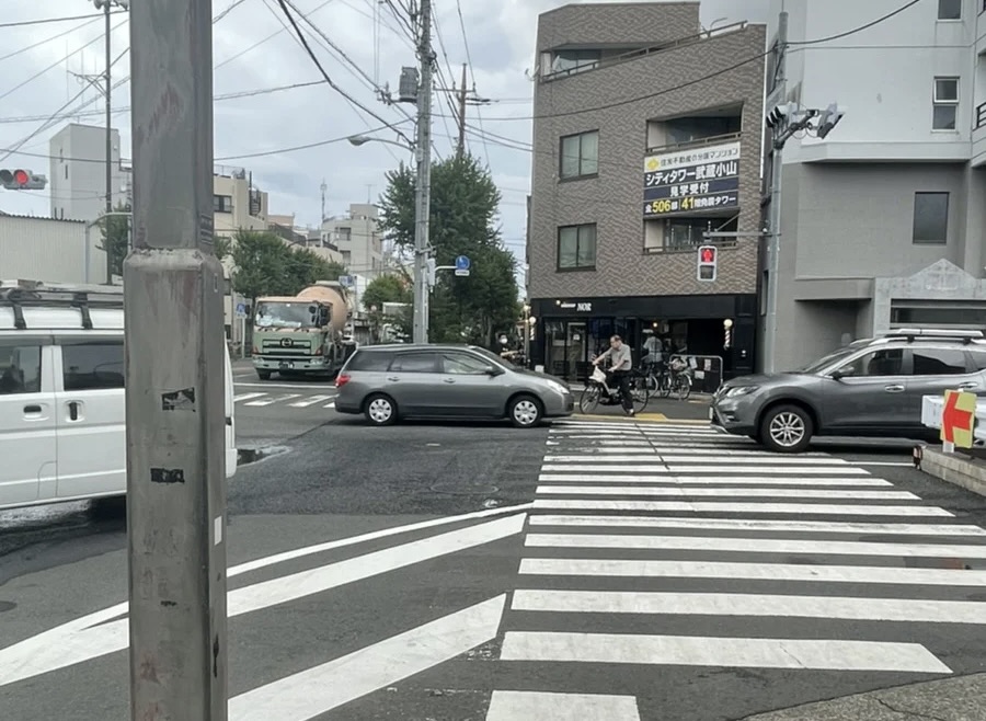 交差点を渡り、さらにそのまま真っ直ぐ進みます。